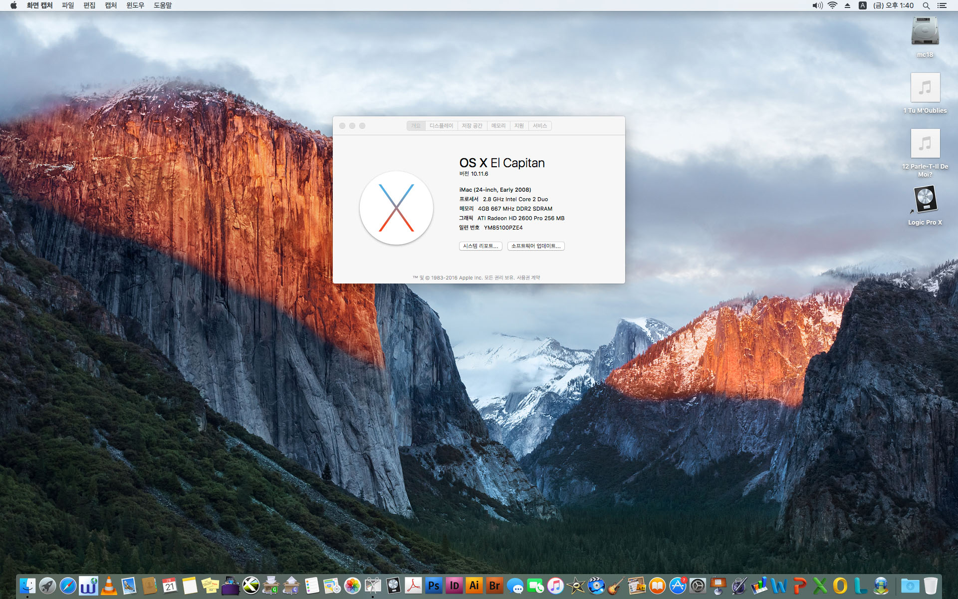 맥os 엘캐피탄과 프로그램까지 다 설치되어있는 상태최상인 아이맥입니다