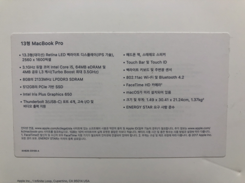 맥북프로 13형 2017년식 512Gssd 판매