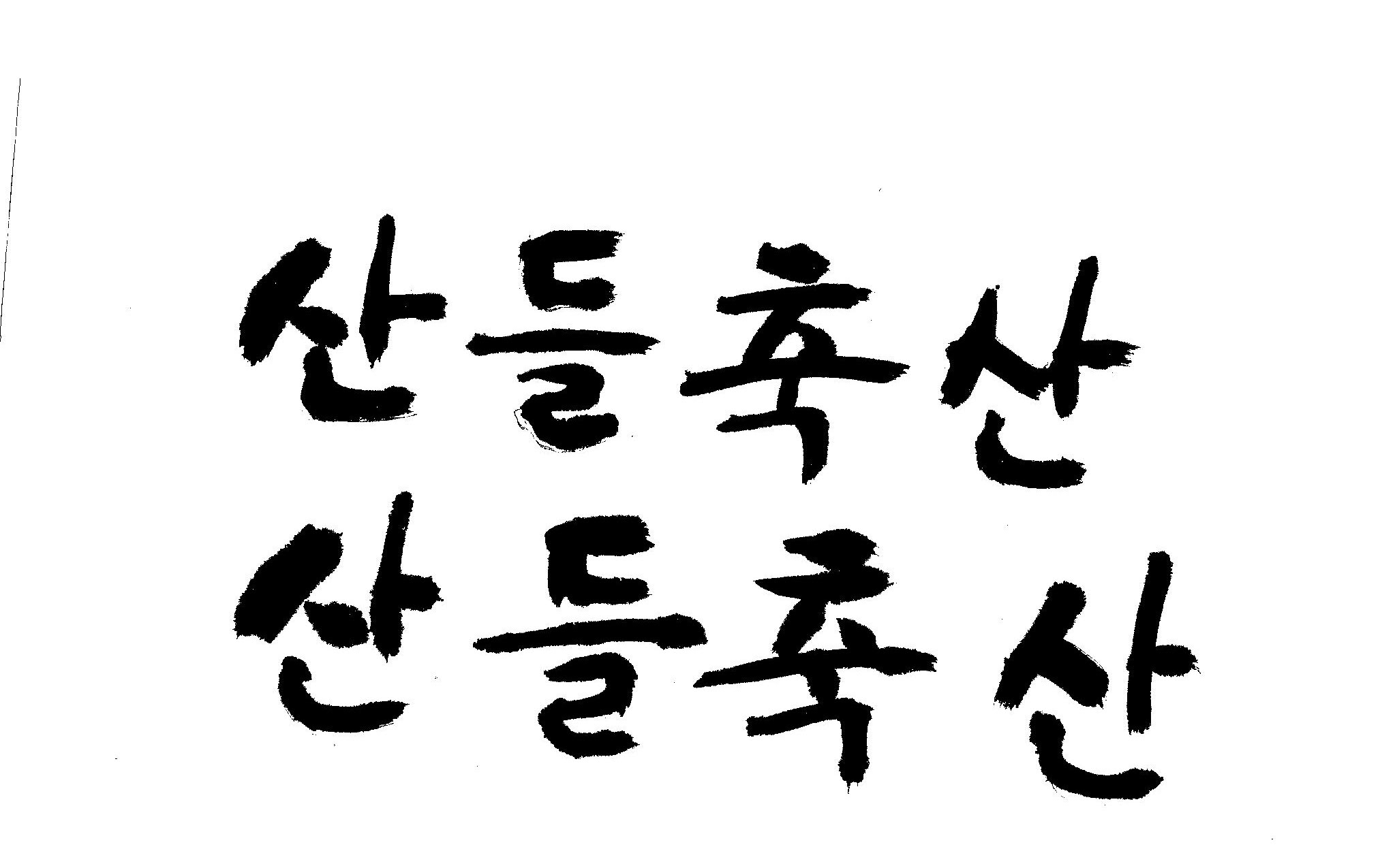 [급]붓서체로 "산들축산"글 캘리부탁드립니다. 김철호 일반 0 7650 2009.02.16 14:48 > > > > > > > > > "산들축산" 붓으로 쓴것처럼 캘리 부탁드립니다. 유려체 말구요 절말 급합니다. 부탁드립니다 참고로 JPG올립니다. 이와 비슷한거요... > > > > > >