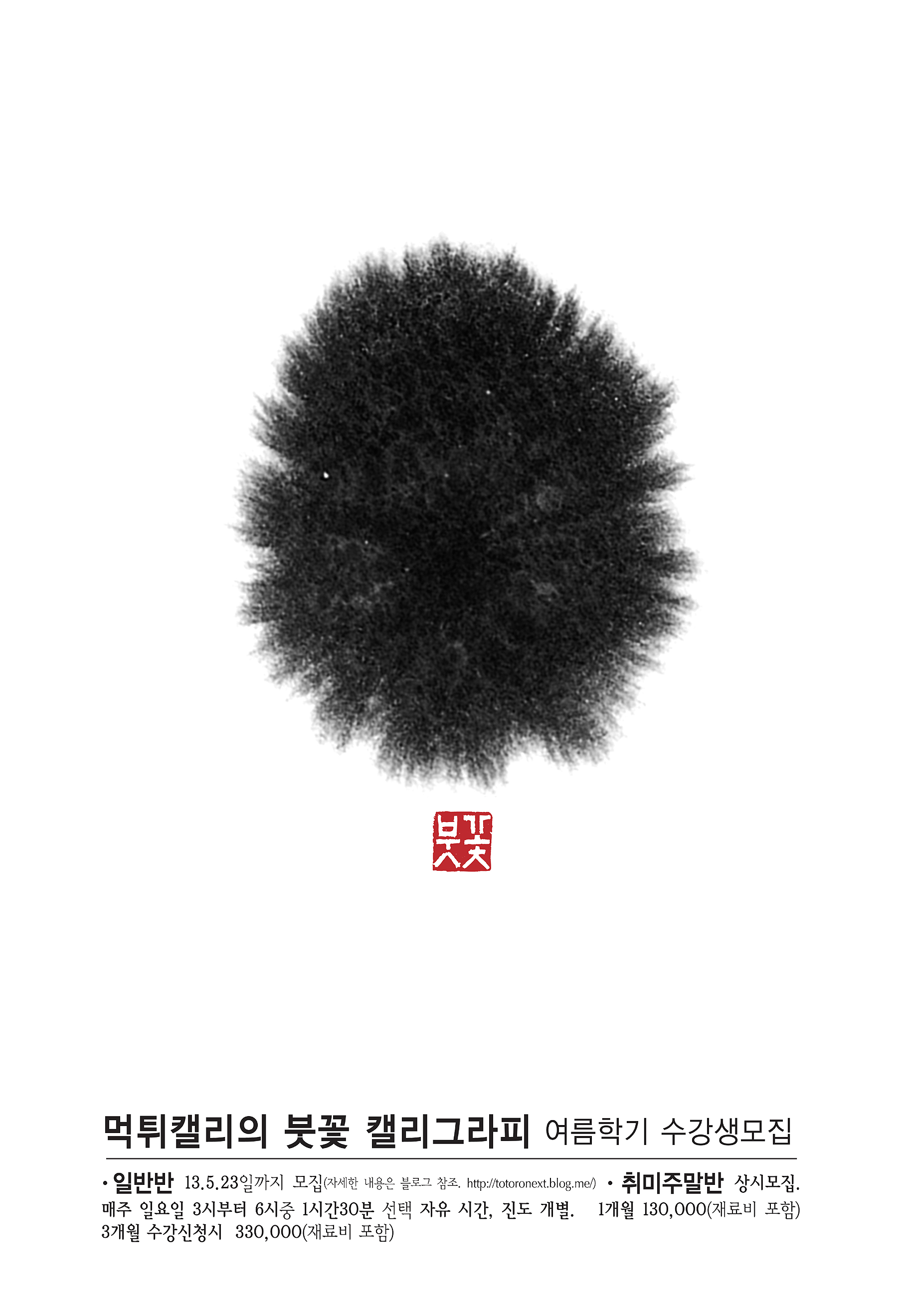 일반 서예학원처럼 자신이 등록한 기간동안 편한 시간에 와서 개별진도를 나가시면 되구요. 1개월 수강료는 130,000원(재료비 포함)이구요